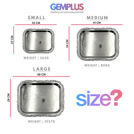 GEM+ | Premium 3-Piece Silver-Plated Vintage Tray Set – Elegant Durable Solid