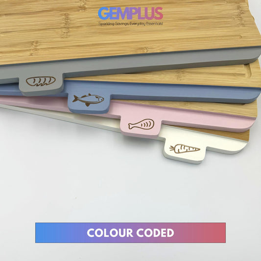 GEM+ | 4 PCS Premium Natural Bamboo Color Coded Chopping Board Set Veggies Meat